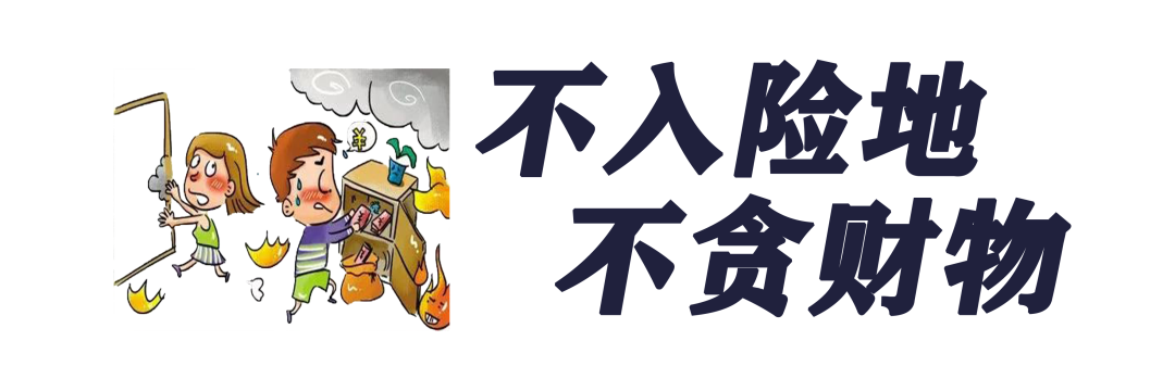 生命安全是第一位的,身处险境,应尽快撤离,不要贪恋财物,不要因小失大,白白浪费宝贵的逃生时间。已经逃离险境的人员,切莫重返险地,自投罗网。